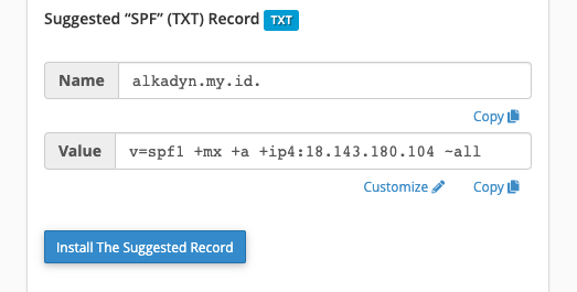 Klik Install The Suggested Record pada bagian DKIM dan SPF.