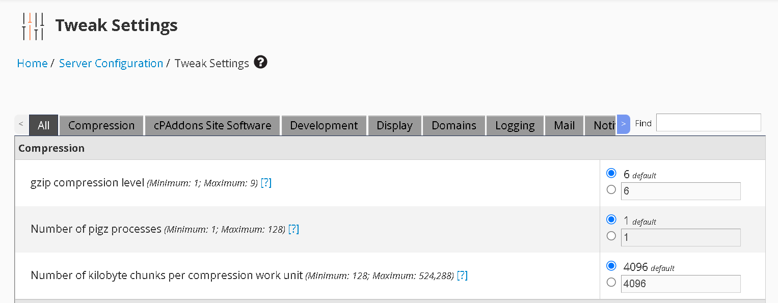 Navigasikan ke WHM > Server Configuration > Tweak Settings.